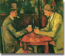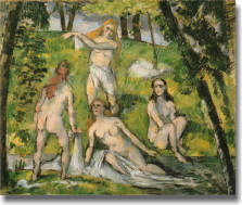 ポスト印象派を代表するフランスの画家。1861年に親友のゾラに刺激されてパリへ行き、画塾アカデミー・スイスで学ぶかたわら、ルーヴル美術館でベラスケス、カラヴァッジョ、ヴェネツィアやオランダの画家の作品を研究した。![]() 1862年から、エクス・アン・プロヴァンスとパリを往き来する日々を送る。またパリでドラクロワとクールベの作品に出会い、1864年には「落選者展」を訪れた。また、当時カフェ・ゲルボワの画家たちの会合に参加し、ピサロに出会ったことがその後の作品に大きな影響を与えた。 ピサロとの出会いにより、セザンヌは淡い色彩と緻密な画面構成を作品の主体とし、印象派の画家たちと一線を画すようになる。セザンヌは、印象派に堅固な形態と構成を与え、最大限に単純化したフォルムとこれに質感を与える色彩の融合を目指した。 1883年から87年のエクスで制作していた期間は、自然のフォルムと構成を抑える傾向がいっそう強くなり、色彩によって形づくられた確固たる形態の中に可能な限り精神的秩序を表現しようとした。セザンヌが同じ画題に繰り返し取り組んだのも決して偶然ではない。《レスタックの眺め》《サント・ヴィクトワール山》がその好例である。セザンヌの目標は自然の姿をそのまま描くのではなく、「球形と円筒で」表現することだった。![]() 1886年ゾラと絶交。この痛手は、暗い室内で2人の人物が向きあっている《トランプをする人々》に影を落としている。こうした内奥性は晩年に特徴的なものであり、1880年ころから描かれる一連の、森の中で《水浴する人々》にしても、次第に重苦しいものになってゆく。この傾向は最晩年にますます強まり、暗い小さな色面を構築的に重ね合わせただけの、ほとんど抽象絵画ともいうべき、事物そのもののような画面が登場する。多作で知られたセザンヌは、晩年《水浴者》をテーマにした作品を多数制作したが。作品は画面が格段に大きく、形態はより抽象化されている。 セザンヌの作品は、その後の近代絵画の発展を支える大きな礎を築いた。キュビスムの画家たちはセザンヌを先駆者としているが、彼の影響はそれだけに留まらない。セザンヌは、自然や感情から独立した法則に基づき、独自の現実性を構築することを絵画の新たな役割とした最初の画家であり、これこそが近代絵画の進歩を支えた原理である。 |