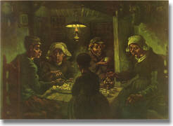 フランスのポスト印象派を代表するオランダ出身の画家。1880年の秋に画家になる決意を固め、ブリュッセルのアカデミーで学んだ後、30歳を目前に画家として出発した。 ![]() 最初のヌーネンでの制作は、ゴッホの画家としての成長に欠かせない時期である。ゴッホは炭坑夫たちと過ごした経験が忘れられず、ヌーネンの風景や住民の素描や絵画を数多く制作した。その大半は《農婦の顔》《馬鈴薯を食べる人びと》など、貧しい農夫や織工が作業に従事した姿や、つかの間の休息を楽しんでいる姿である。 画家としての才能が開花するのは、1886年からのパリ生活で印象主義のモネ、ルノワール、スーラ、ゴーガンなどの洗礼を受けてからである。当時ゴッホは、印象派の作品と点描法への興味から、色彩の効果を熱心に研究しており、点描法は彼の後の作品に影響を与え、それまでの暗い鈍重な色彩は消え失せ、《タンギー親爺》に代表される明るい筆触が画面を満たすようになる。これにはまた、浮世絵からうけた強い印象が働いている。事実、1888年ゴッホは、日本のイメージを求めて南フランスのアルルへと向かった。 ![]() アルルの光と明るい色彩に魅了されたゴッホは、《ひまわり》の連作などの代表作を制作する。しかし、年末にアルルで同居していたゴーガンと激しい口論の末、ゴーガンを刺そうとしたが、自分の耳を切り取ってしまい、後に《耳を切った自画像》を描いている。この時期の《麦畑》《糸杉》などでは、ぎらぎらした量感ある色彩とうねるような筆触によって、自然のエネルギーを画面に噴出させ、また《夜のカフェ》では、強烈なコントラストによって、カフェにたむろする人間存在の狂気すらあばきだした。 ![]() ゴッホ自身狂気と無縁でなく、1889年サン・レミの精神病院に収容された。しかし創作意欲は失わず、この頃の《星月夜》は、自然と感情とが狂おしいまでに一体になろうとうごめいている、画期的な作品である。1890年の春、ゴッホは療養所を出て、パリ近郊のオーヴェールに移り、弟とガシェ博士の世話を受ける。最後の作品は、いかにも病的な《医師ガシェの肖像》と、死の影が色濃くただよう《カラスのいる麦畑》を残し、7月末ピストル自殺をとげた。 ![]() |