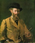 | バジールにモデルになるよう頼まれる。バジールは、コンダマン街の彼の新しいアトリエを措いた作品を制作していた。マネは後に、バジールのブラシや絵具を肖像画に描き込むが,著しく不均衡なサイズのものになる。 | ||||