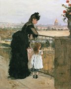 | 1868 | 27歳 | . | ファンタン=ラトゥールの紹介でマネと知り合う。マネの依頼で彼の作品《バルコニー》のためにギュメとクロー嬢とともにモデルとなる。モリゾ家とマネ家の家族ぐるみの交際は急速に深まる。 | ![]() マネ画《バルコニー》 |