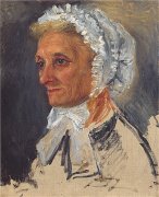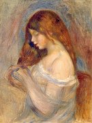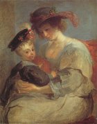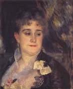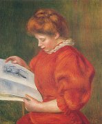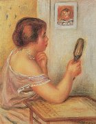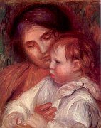 | . | 両親はグレーの熱烈を申し出を断り、すでにすぐれた画才を示していたルノワールをフォセ=デュ=タンプル街76番地の磁器業者レヴィ兄弟の許にあずける。それからの4年間、磁器絵付師としてみるみる腕をあげ周囲を驚嘆させる。最初は花模様の飾りつけを会得し、ついでマリー・アントワネットの肖像を措き、彼の磁器はかなりの売れゆきを示した。 | ![]() 母の肖像 (マルグリート・メレル) |