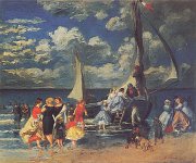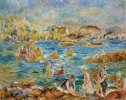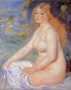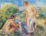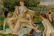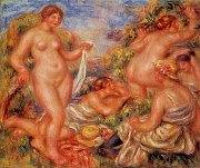 | . | 『アナクレオンの牧歌』に感銘を受け、ルノワールは神話の主題に興味を持つ。そしてモデルにオリンボスの神々の気高さを与えることにより、神話の世界を甦らせようとした。「パリスの審判」等の作品に、古代彫像の均整のとれた美しいポーズと豊かを形態を表現している。 | |||