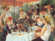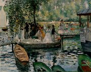 | 6月 | ルーヴシェンヌの両親の家に滞在し、ほぼ毎日ブージヴァル近郊のサン=ミシェルに住むモネを訪ねる。当時セーヌ河には水浴場を兼ねた食堂があちこちにあり、休日にはパリからの人で賑わっていた。ルノワールとモネはその中の一つ《ラ・グルヌイエール》で同じ主題の絵にとり組む。まばゆい陽光の下で自然と向かい合った彼らは魅惑的をセーヌの表情をとらえるのに夢中になり、印象派の先駆となる作品を描く。 | ![]() ラ・グルヌイエール |