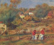 | 春 | カーニュに滞在の間、きびしい病苦に悩み、あまりにも激しいやせ方のために、長く座っていることさえ不可能になった。しかしルノワールは、やせた体と歪んだ両手で、描きつづける。絵画と家族、数人の親しい人々の集まり(ポール・ベラール、ルイ・パルタ、ジョルジュ・リヴィエール、セザンヌの息子、アルベール・アンドレ)が、病む彼の心に穏やかを信頼感を育んでいく。こうしたなかでルノワールの仕事の成果はますます高まり続ける。 | |||