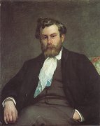 | ガッサーは「巨匠たちの自画像」の中で、自画像芸術の崩壊は印象派の勝利とともに始まると述べているが、絵画の純粋性の追求は、自画像もまたかつての人生観を放棄した。印象派時代の画家たちは自己を直接あらわすよりも、光りの中の自己の形と色を描いている。あたかも自己の内面を描いてもいたしかたないことを共通に理解しているようにみえる。 それでも、多くの人々が自画像「とりわけ優れた画家の手になる自画像」の魅力にひきつけられるのは、きわだった個性をかいま見て天才の内面に少しでも触れたいという欲求が強いからといえる。 画家たちは常に、人間として美術家としての自己の頂点に立って自画像を描くという事実があり、自画像に私たちが相対するのは、誰かの単なる肖像を超えた画家のある時期の総体、場合によってはその生涯の全体像でさえあるという事実があるからである。 その自画像から強烈な印象を受ければ受けるほど、何故その時に自画像が描かれたのかとの事情をつかみたいと願うのは、自画像が風景画や肖像画と異なり、自分自身を対象とする極めて個人的な性格の強い絵画である以上、当然の願望といえる。よって観る者も自画像を受容するには、当の画家の生涯や作品についての最低限度の知識が必要となる。 ![]() ![]() マネ(1832 パリ 〜 1883 パリ) マネは最後までサロンを真の闘いの場と考え、入選や入賞に固執したことをマネの頑固さとか天の邪鬼のせいにしたり、いかにもブルジョワらしい名誉への執心と考えたりすることはできる。しかし、性格的あるいは階級意識的な次元では一応そう定義できる事柄を、芸術の次元におき直せば、自分こそが「大芸術」としての西欧絵画の正統性の継承者であり、必ず認められる日が来るはずであるという意識にほかならなかった。マネの自画像は2枚あるが、この自画像は紳士=画家としての面目を髣髴させるもの、内省的な落ち着きのうちにも、明るい黄土色の勢いのあるタッチが華々しさを生み出している。しかし、彼の輝かしい肖像作品に比べて、自画像は奇妙なくらいに無表情に見える。芸術家としての彼の個性は主張されず既に市民社会の誰かが絵筆をとっているにすぎないようにみえる。 ![]() ![]() モリゾ(1841 フールジュ 〜 1895 パリ) モリゾの開かれた漆黒の瞳は、男の文化圏の中で讃美の眼差しを浴びながら、その立場を優雅に守りつつ、さらに言えば利用しつつ、その美しい仮面の裏から、逆に、世界をオブジェとして見る男の目を失わなかった。それは、見られる存在である宿命を負いながら見続けるという、二つの逆行した立場を合わせもつ、女性画家が装わざるをえなかった、美しい武装の表情であった。 ![]() ![]() カサット(1845 アラゲイニー 〜 1917 メニル=テリピュス) カサットはファッショナブルな大きな帽子を被り、当世風に着飾った若い女性の姿で、眼差しを正面に向け男の鑑賞者にとっては典型的な凝視や嘆賞の的として描いている。しかし、画板を前にして座っていることは,彼女の姿の右側を断ち切る一本のかすかな青い線を見れば一目瞭然であり,この伝統的な芸術家のポーズによって,彼女は古くからの芸術家たちの列に自分を関係づけている。 ![]() ![]() ドガ(1834 パリ 〜 1917 パリ) ドガは極端に人間嫌いで特に女性嫌いであったともいわれ、事実、彼が一生独身を貫いたことなどそのことをずばり象徴しているが、それにしては踊り子や裸婦など、大半は女性によって埋め尽くされている。ドガは心の底では人間に対して深い愛情、並々ならぬ好奇心をもっていたが、芸術のためにはそれを押しとどめ、無理にでも人間嫌いという名の鎧で身を守らなければならなかったと読み取れる。鉛筆鋏みを持つ自画像はドガが20歳ころの作品であるが、厚い唇が肉感的に訴えてくるところには、祖母から流れているイタリア人の血が伺えるが、眼はこれと対照的に冷静そのもので、この自画像の若さと沈着さの合体は印象的である。 ![]() ![]() ルノワール(1841 リモージュ 〜 1919 カーニュ) ルノワールは自分の生き方を好んで流れに従う「うき」に例えていた。このような生き方こそ、ルノワールをあの豊かでのびやかな無類の生命感に導いたものである。彼にとって必要なのは、生命にあふれた外部世界との絶えざる結びつきであり、融和であることから、世界から孤立して自分自身と孤独な対話の自画像は数少ない。横顔の自画像は自分自身と正面から向き合うことに、世界と生命感から孤立するような、居心地の悪さを感じたのであろう。横顔ならば、他の人間や花や風景を眺めるように虚心に眺め一体となることができる。この自画像には、どのような自画像にも多少とも感じられるあの屈折が全く感じられない。 ![]() ![]() モネ(1840 パリ 〜 1926 ジヴェルニー) モネには人々を引きずる強い意思と、人々の中心になるのびやかな人柄があったこそ、世間の無視と批判に耐えて印象主義を推し進めることができた。
